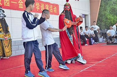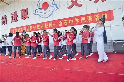 學(xué)得有模有樣 9月19日下午,鯉聲劇團(tuán)走進(jìn)金石中學(xué),舉行“莆仙戲進(jìn)校園”活動(dòng),劇團(tuán)的演員們?yōu)閹熒鷤儙?lái)了精彩紛呈的傳統(tǒng)莆仙戲文化盛宴。 現(xiàn)場(chǎng),主持人李玉琴?gòu)钠蜗蓱虻膩?lái)源、劇種發(fā)展歷程、傳統(tǒng)劇目等作了重點(diǎn)介紹,普及了戲曲的念、唱、做、打等戲曲知識(shí),加深了同學(xué)們對(duì)本土戲曲文化的初步了解。高雅的戲曲藝術(shù)是中華優(yōu)秀傳統(tǒng)文化中的璀璨明珠,生旦凈末丑、坐念唱打融合了詩(shī)詞、歌舞、音樂(lè)、舞美、武術(shù)、等傳統(tǒng)藝術(shù)精華,是中華民族最具特色的傳統(tǒng)文化。近距離活動(dòng)的內(nèi)容讓學(xué)生感受到傳統(tǒng)莆仙戲的藝術(shù)魅力。 隨后,演員們傾情展示了“生旦凈末丑”的行當(dāng)科介后,又表演了莆仙戲經(jīng)典劇目《春草闖堂》選段“抬轎子”折子戲。生動(dòng)精彩的表演,深深地吸引了在場(chǎng)的師生。 此次“戲曲進(jìn)校園”活動(dòng),讓孩子們近距離地觀看了行當(dāng)以及戲曲表演,互動(dòng)時(shí)間更是紛紛爭(zhēng)著上臺(tái)模仿各個(gè)行當(dāng)動(dòng)作,雖然舉止生澀,但情趣滿滿,現(xiàn)場(chǎng)氣氛熱鬧非常。“莆仙戲進(jìn)校園”活動(dòng),對(duì)傳揚(yáng)地方傳統(tǒng)文化具有深遠(yuǎn)的意義,活動(dòng)的開(kāi)展能讓學(xué)生了解熱愛(ài)本土傳統(tǒng)文化。 金石中學(xué)負(fù)責(zé)人表示,希望以后有更多的傳統(tǒng)文化活動(dòng)能走進(jìn)校園,讓孩子們從小敬畏傳統(tǒng)文化的博大精深,在心靈深處播種下傳統(tǒng)文化的種子,并擔(dān)負(fù)起傳承中華傳統(tǒng)優(yōu)秀文化的責(zé)任。 |