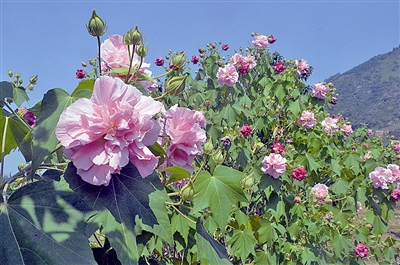 制作花茶 “莫怕秋無伴醉物,水蓮花盡木蓮開。”唐代詩人白居易的詩句,說的是百花凋謝,木芙蓉卻凌霜綻放。這不,在鯉城街道來洋社區的百畝桂園,4000余株木芙蓉花花開正艷、美不勝收,吸引了一批批游客慕名前來觀賞游玩。 10月10日上午,記者來到離城區不到3公里的桂園,只見大片木芙蓉已經盛放,爛如錦、絢爛如霞,分外妖嬈,描繪出一幅絢爛的城郊畫卷。不少游客看到這美景,紛紛與木芙蓉零距離接觸,駐足欣賞、合影留念。 “看朋友圈里有人發這里的風景照,就過來逛逛,真是不虛此行?!鼻皝碛瓮娴睦钪仪谂恳贿吤χ恼?,一邊笑著告訴記者。難得郊區還有這么一處賞花的好地方,她趁著秋色正好,約了三五友人一起過來玩。 據了解,木芙蓉,又稱芙蓉花、拒霜花和木蓮等,屬錦葵科,木槿屬落葉大灌木。花朵有單瓣和重瓣,花瓣可食用和藥用?;ㄐ嗡颇档ぃ杷`放,極為美觀。中國是木芙蓉的故鄉,除東北、西北等寒冷地區外,其他地區均有分布,它還是成都市花。 “首批初花9月底開放,目前已進入繁花期,花期可以持續三個月,每天都有近百人前來賞花?!惫饒@管理員吳建新告訴記者,他正帶著工人,采集殘花,置于陽光下暴曬。他說,木芙蓉不僅能夠觀賞,還能將花采下制茶,有清熱解毒的功效。此外,花莖、花葉都可以用于提煉中藥材。 記者了解到,這片名為桂園的中藥材種植基地,去年6月竣工投用,以園內種植1萬余株丹桂而得名?;刎撠熑藚墙鹘榻B,桂園一期共投資2000余萬元,在林間套種36 種中藥材以及各種花木,不但有我縣名貴品種黃梔子、白花益母草、麥冬等,還有從山西引進的鈣果,臺灣引進的木芙蓉、長果桑,丹麥引進的檸檬,日本引進的七號薄荷,以及省農科院優品金銀花、金桔等。此外,單是花卉就有桂花、櫻花、木芙蓉、茶花、桃花、荷花、玉蘭、梔子花等,一年四季都可以欣賞繽紛花色,成為市民郊游賞花的好去處。 |
