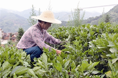 青黛收割 7月31日上午,盛夏高溫絲毫沒有影響書峰鄉青黛種植戶的喜悅,大家頂著烈日收割、泡制青黛,處處洋溢著豐收的喜悅。 書峰鄉是遠近文明的“青黛之鄉”,種植青黛歷史悠久,早在宋代當地人就種植青黛用于制作染料,民國時發現其藥用價值后大規模種植,其傳承千年的泡制技法已被列入省級非物質文化遺產名錄。 “青黛也被叫做馬蘭草,在古代作為衣物染料、女子畫眉之用。”書峰鄉四黃村種植大戶黃鏡平向記者介紹,馬蘭草制作出的成品作為藥材稱之為“青黛”,是板蘭根的主要原料,藥用價值極高;若作為染料,則稱為“藍靛”。 據黃鏡平介紹,青黛制作需要純手工,花費時間多。收割上來的馬蘭草,首先要放入池子中浸泡。三天三夜后,撈出接近腐爛的枝葉,加入熟石灰使其發揮作用。 接下來,就進入最重要的工序——打藍。記者在現場看到,黃鏡平拿著一根3余米長的木棍,在池子中不停地攪拌,池水的顏色由綠至褐再逐漸變藍,池面上漸漸浮出了淡藍色的泡沫。這泡沫也叫藍花,是馬蘭草浸泡液與熟石灰最先反應的物質,含藍色成分最高,為青黛中的上品,只要撈出晾曬,就能成為粉末狀青黛,無需過濾。 撈完藍花,還要接著打制、攪拌近半小時,之后便是一個多小時的沉淀和過濾,最后將黑藍色沉淀物撈出,放入麻袋內,壓上大石繼續排出水分。由于青黛成品是膏狀,運輸十分不便,農戶還要將其用手捏成條狀,暴曬干透,方便客商前來收購。 記者了解到,由于勞動強度大,堅守這一門手藝的大多是村里的老年人。但自從近年青黛制作技藝被列入省級非物質文化遺產名錄,并開始啟動申報國家地理標志工作后,書峰青黛價格逐年提高。 “去年曬好的青黛一公斤大概在36元左右”,黃鏡平說,今年價格比去年更好,一公斤可以賣到50元左右,前幾天有一批沒有曬干就被客戶預定了,按照目前的行情來看,一畝可以收入一萬多元。村民們收入增加了,積極性也就漸漸提高了,書峰鄉現有馬蘭草種植面積兩千畝,每年可產青黛四百多噸,產值可達兩千萬元以上。 |