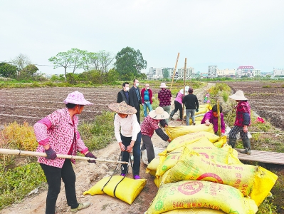 臺(tái)資農(nóng)業(yè)企業(yè)國(guó)益公司員工在田間地頭抓緊搬運(yùn)肥料,滿足春耕需求。