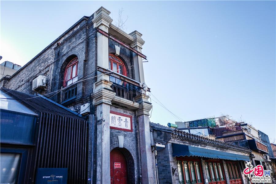 窗戶外,正對咖啡館的青云閣騎墻門樓有些突兀,與旁邊低矮的平房拉開高度,顯示著不同,很難想象,這扇緊閉的大門后,鎖著時空那頭一段繁華過往,這里,曾是名流云集的京城時尚潮頭處,清末民初,北京四大商場之一的青云閣,這是它的北門。在現在來說,青云閣就是當時的高級商業綜合體,可實現吃喝玩樂游購娛一站到位的地方,商場內有普珍園菜館、玉壺春茶樓、步云齋鞋店、富晉書社眾多老字號,是許多名流雅士們逛街、聽戲、品茗、購物,聚會的地方,魯迅、周作人、梁實秋、康有為、梁啟超等都曾在這里留下過足跡。