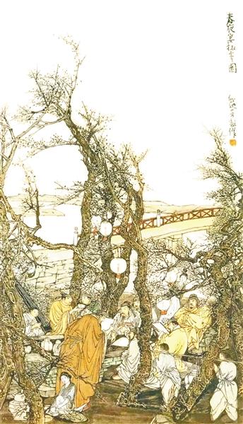 《春夜宴桃李園》 木蘭溪奔流不息,孕育仙游燦爛文明。度尾鎮(zhèn)中岳村,曾走出一位與齊白石并稱(chēng)“北齊南李”的 畫(huà)壇巨匠——李耕。這位集文人畫(huà)、職業(yè)畫(huà)與民間畫(huà)特質(zhì)于一身的藝術(shù)大師,用一生筆墨為仙游國(guó)畫(huà)藝術(shù)注入靈魂,更以“李耕畫(huà)派”的薪火傳承,在中國(guó)畫(huà)史上寫(xiě)下濃墨重彩的篇章—— 今年是李耕誕辰140周年,由縣委宣傳部、縣文旅局主辦,福建博物院、仙游縣博物館、仙游李耕國(guó)畫(huà)藝術(shù)研究院聯(lián)合承辦的“一笑娑婆自在天——李耕誕辰140周年紀(jì)念展”10月24日在福建博物院?jiǎn)⒛?,并將持續(xù)至2026年1月3日。展覽中,李耕的《達(dá)摩渡江圖》《皆大歡喜圖軸》《東坡笠屐圖軸》《賣(mài)炭翁圖軸》等70余件(套)經(jīng)典佳作悉數(shù)亮相,透過(guò)這些珍貴的佳作,讓我們共同回望一代大師深厚的藝術(shù)造詣與薪火傳承。 1 鄉(xiāng)野筑基 畫(huà)壇崛起的傳奇人生 1885年,李耕生于仙游縣度尾鎮(zhèn)一個(gè)貧寒的民間繪畫(huà)世家,原名李實(shí)堅(jiān),字硯農(nóng),號(hào)一琴道人。祖父李泰系與父親李墀的壁畫(huà)技藝,是他最早的藝術(shù)啟蒙。七歲時(shí),他便能以木炭描摹莆仙戲舞臺(tái)人物,筆觸間已見(jiàn)靈性。童年的他隨父奔波于鄉(xiāng)野寺廟,繪制丹青繡像與壁畫(huà),那些穿梭于梁柱間的線(xiàn)條,早已融入他的血脈。 將中國(guó)古代典籍的傳統(tǒng)故事轉(zhuǎn)換為藝術(shù)形象,是李耕嘗試?yán)L畫(huà)藝術(shù)的根基,當(dāng)?shù)匦悴徘衩骺?、張立夫賞識(shí)其才華,授以古典文學(xué)與書(shū)法,讓他得以在筆墨之外,涵養(yǎng)詩(shī)文底蘊(yùn)。他師法上官周、黃慎等先賢,更遠(yuǎn)溯顧愷之、吳道子的藝術(shù)精髓,主張“效先賢、嚴(yán)法度、堅(jiān)基礎(chǔ)、師造化、脫窠臼、創(chuàng)新意”,在傳統(tǒng)沃土中汲取養(yǎng)分。 1925年,李耕的《彌勒佛》在東南五省畫(huà)展中摘得桂冠,同年他與李霞、陳子奮等創(chuàng)辦福建現(xiàn)代首個(gè)藝術(shù)團(tuán)體——龍珠畫(huà)社,為閩派藝術(shù)播撒火種。1928年中法繪畫(huà)聯(lián)展上,《東坡笠履圖》《秋雨歸帆》再度奪魁,徐悲鴻在《申報(bào)》盛贊:“有以奇拙勝者,首推李君耕,揮毫恣肆,可以追蹤癭瓢,其才則中原所無(wú)?!边@份贊譽(yù),成為他躋身全國(guó)畫(huà)壇的重要標(biāo)志。 新中國(guó)成立后,李耕迎來(lái)藝術(shù)生涯的新高峰。1959年,省政府批準(zhǔn)成立“李耕國(guó)畫(huà)研究所”,他親任導(dǎo)師,培育出蔣金讀、周秀廷等一批名家。1960年,他為人民大會(huì)堂國(guó)賓廳創(chuàng)作巨屏《松青鶴白東方紅》,筆墨間的雄渾氣象享譽(yù)京城。直至 1964年辭世,他始終以筆為刃、以畫(huà)為心,將 320幅珍藏作品悉數(shù)捐獻(xiàn)給國(guó)家,踐行著“畫(huà)為人民”的誓言。 2 熔古鑄今 獨(dú)樹(shù)一幟的繪畫(huà)特質(zhì) 李耕的繪畫(huà)藝術(shù),恰似木蘭溪水般兼具靈動(dòng)與厚重,在題材、筆墨與風(fēng)格上形成鮮明特色。他擅長(zhǎng)古典人物、山水花鳥(niǎo),兼通金石雕塑,更以詩(shī)書(shū)畫(huà)印的全面修養(yǎng),成就“國(guó)之瑰寶、畫(huà)壇之光”的盛譽(yù)。 在題材選擇上,李耕始終扎根文化土壤與時(shí)代現(xiàn)實(shí)。他筆下的仙佛高士如《達(dá)摩》《麻姑獻(xiàn)壽》,汲取仙游寺廟壁畫(huà)與民俗養(yǎng)分,鮮活靈動(dòng);特殊年代里,他以《鐘馗圖》題詩(shī)“豹目虎須君莫厭,予今人面更猙獰”,辛辣諷刺時(shí)政;用《難民圖》寄托“中原風(fēng)景不摧殘”的憂(yōu)思,將藝術(shù)與家國(guó)命運(yùn)緊密相連,蘊(yùn)愛(ài)國(guó)情懷,這種題材的廣度與深度,讓他的作品兼具審美價(jià)值與思想力量。 此外,李耕的《上古神話(huà)》《蘇武牧羊》等作品也取材于中國(guó)傳統(tǒng)故事。通過(guò)這些主題創(chuàng)作,李耕將東方歷史畫(huà)敘事傳統(tǒng)與士人精神傳統(tǒng)對(duì)接,構(gòu)建起兼具現(xiàn)代國(guó)家意識(shí)與傳統(tǒng)倫理價(jià)值的表達(dá)范式。 在筆墨技法上,李耕達(dá)到了“雄健恣肆”與“精妙傳神”的統(tǒng)一。他兼具黃慎的縱逸與吳道子的剛勁,寥寥數(shù)筆便能勾勒人物神韻?!稏|坡笠履圖》中,蘇軾的蓑衣紋理以干筆皴擦,笠帽輪廓用濕墨暈染,干濕濃淡間盡顯人物風(fēng)骨,將文人畫(huà)的雅致與民間畫(huà)的質(zhì)樸完美融合。 李耕善用夸張變形凸顯人物性格,彌勒佛的大腹便便、東方朔的詼諧靈動(dòng),皆在比例重構(gòu)中更顯神韻。他的構(gòu)圖大膽多變,《十八學(xué)士登瀛洲》以錯(cuò)落有致的人物排布營(yíng)造空間層次,背景山水則簡(jiǎn)筆點(diǎn)染,主次分明間盡顯章法之妙。這種“形神兼?zhèn)洹⒁馊は嗌钡膭?chuàng)作理念,成為其藝術(shù)的鮮明標(biāo)識(shí)。 3 德藝雙馨 光照后世的精神品格 李耕的偉大,不僅在于畫(huà)藝精湛,更在于其“畫(huà)品即人品”的精神堅(jiān)守。這位從鄉(xiāng)野走出的大師,始終保持著淳厚質(zhì)樸的本性,更以強(qiáng)烈的正義感與家國(guó)情懷,詮釋著藝術(shù)家的擔(dān)當(dāng)。 李耕的清高品格在處世中盡顯。國(guó)民黨旅長(zhǎng)求畫(huà)時(shí),他繪彌勒佛旁孩童