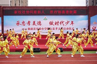 作品展 11月6日,仙游縣實驗小學以“忠孝文化”為核心,開展系列主題活動,通過文化展示、藝術展演、啟動儀式及全縣家校社建設暨中小學思政工作推進會等,呈現該校在忠孝文化教育中的實踐成果,有效推動全縣家校社協同育人及中小學思政工作的深入發展。 活動伊始,嘉賓與師生代表走進“忠孝”文化長廊,在圖文展板中感受文化脈絡,學生以書法、繪畫、泥塑及課桌舞《天天向上》展演,展現學生良好的精神風貌。 隨后“承忠孝美德做時代少年”忠孝文化踐行啟動儀式拉開帷幕,《幸福豐收謠》《中華美少年》《孝武承風》等節目傳遞勞動喜悅、青春活力與忠孝內涵,贏得掌聲。學生代表發出踐行倡議,校長闡釋忠孝文化價值。在與會領導見證下,啟動球點亮,標志著該校忠孝文化踐行活動正式啟航。 儀式過后,召開全縣家校社建設暨中小學思政工作推進會。會上,大合唱《紅星伴我成長》和情景朗誦《忠孝的傳承》,以藝術形式表達傳承信念。 交流環節,仙游一中代表就“‘八德’鑄魂”德育品牌、蜚山第一小學代表圍繞“德禮教育”校本實踐分別發言。縣實驗小學代表系統介紹“忠孝鑄魂、奮飛筑夢”特色品牌建設經驗,為全縣思政教育創新提供“實小方案”。最后,部署推進全縣中小學思政課一體化建設打造校園文化特色思政與德育品牌工作。 |
